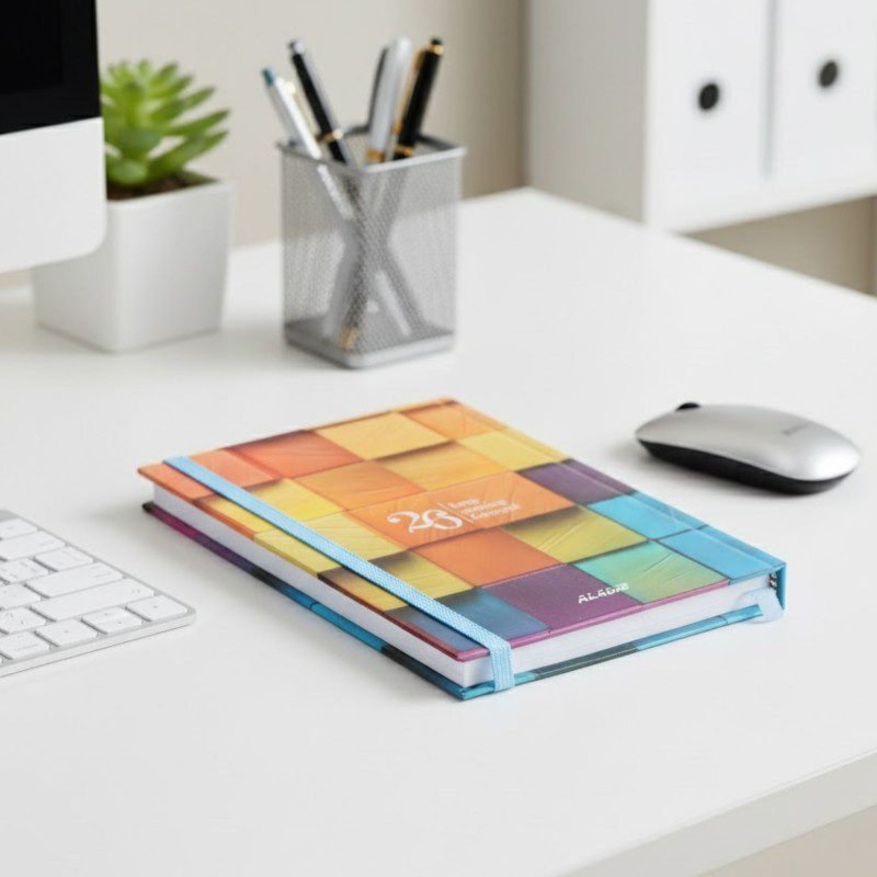 أجندة 2026 من أديب – تصميم مربعات ملونة المقاس: 12 × 17 سم