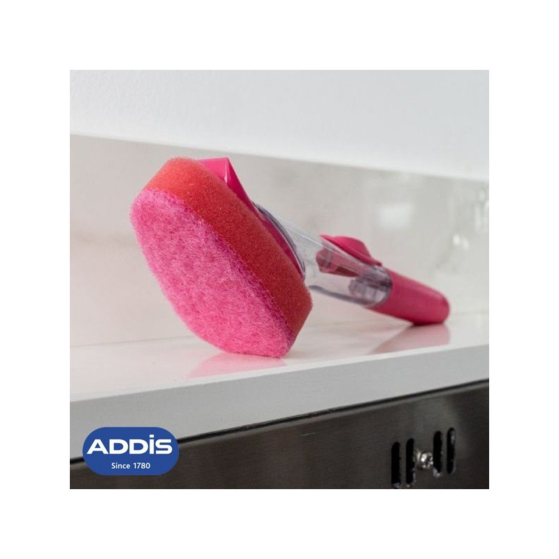 فرشاة لتنظيف الصحون برأس اسفنجة خشنة مع عبوة لإضافة الصابونسهلة، عملية، وأنيقة ولا تخدش الصحون صناعة انجليزيةالأبعاد : 7*6*26 سماللون: زهري