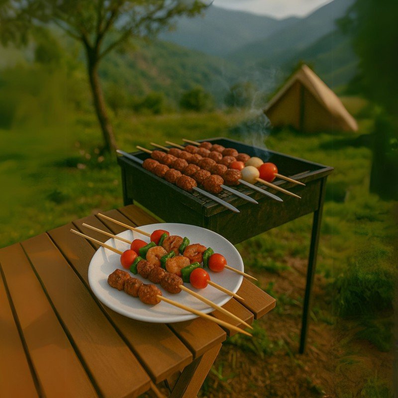 أسياخ للشوي مصنوعة من الخشب مبسطة