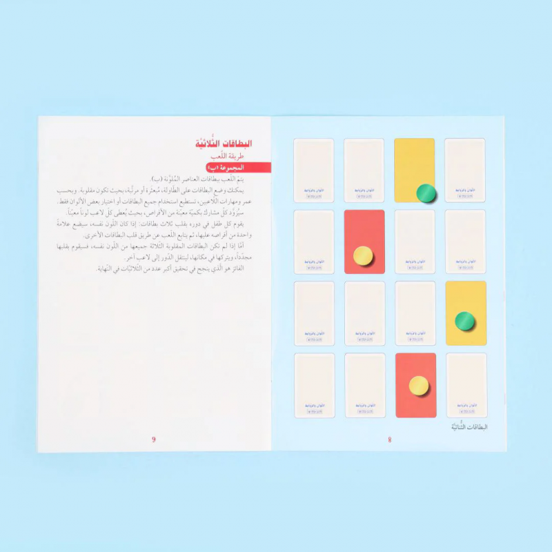 تم تصميم هذه البطاقات لإنشاء ألعاب متنوعة خاصة بالألوان والروابط بينها، ومناسبة للأطفال من عمر 3 إلى 4 سنوات، بهدف تطوير مهاراتهم الكلامية، وتحفيز روح الملاحظة والانتباه، وتنمية الذاكرة، وإثراء المفردات، وتعزيز الفكر المنطقي والتعبير اللغوي. كما تساهم في تنشيط الوظائف الذهنية المختلفة مثل: