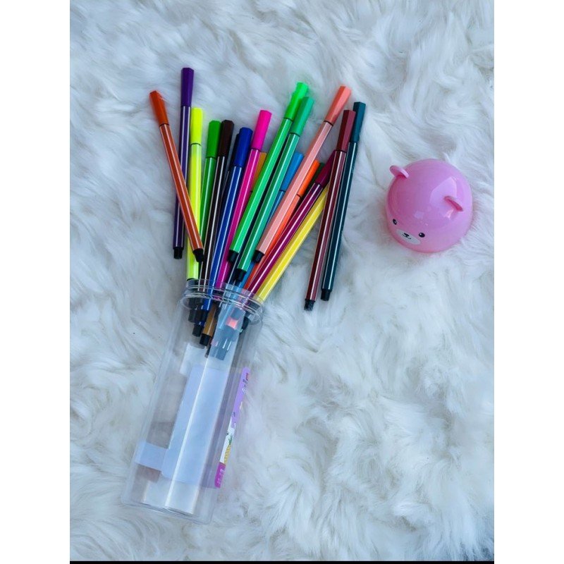 ✅الوان فلوماستر اسطوانة لون العلبة زهري. ✅24 لون مختلف . ✅تصميم مفيد وعصري والوان زاهيه رائع كهدايا للأطفال ولإستخدامات اخرى لجميع الاجيال.
