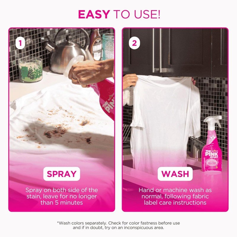 لأفضل النتائج، استخدم المنظف فور حدوث البقعة لمنعها من التغلغل في الأقمشة.
