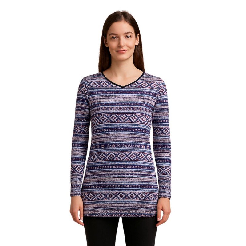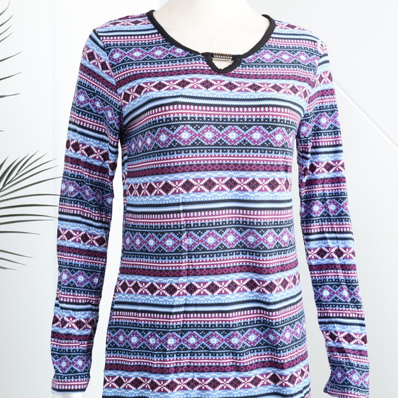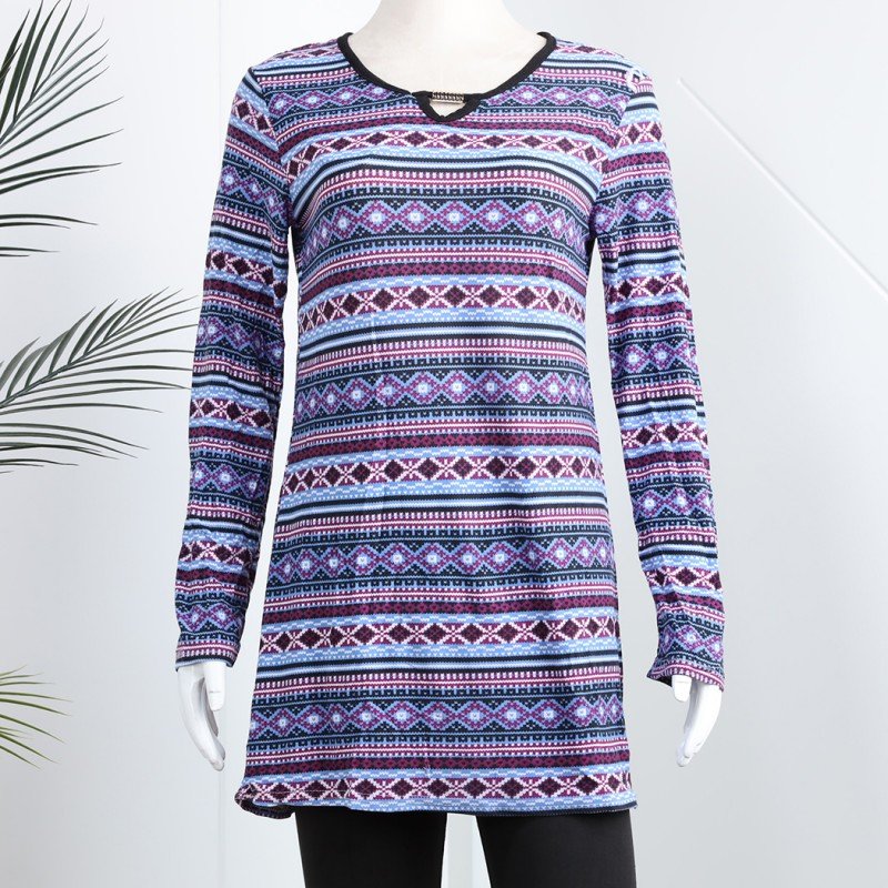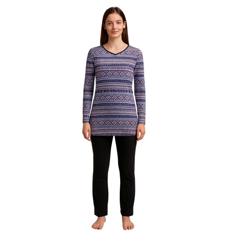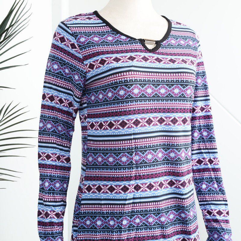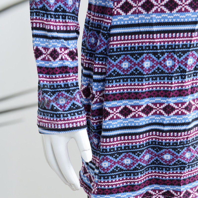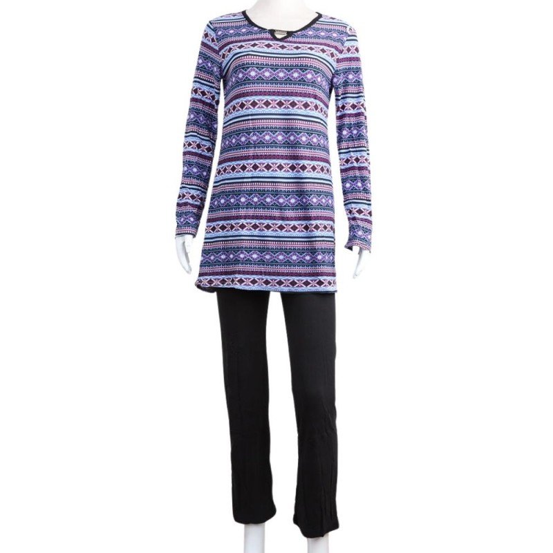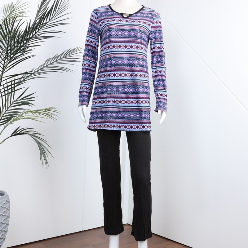 بيجامة بأكمام طويلة بتصميم نقشة مغربية للنساء – لون بنفسجي وأسود