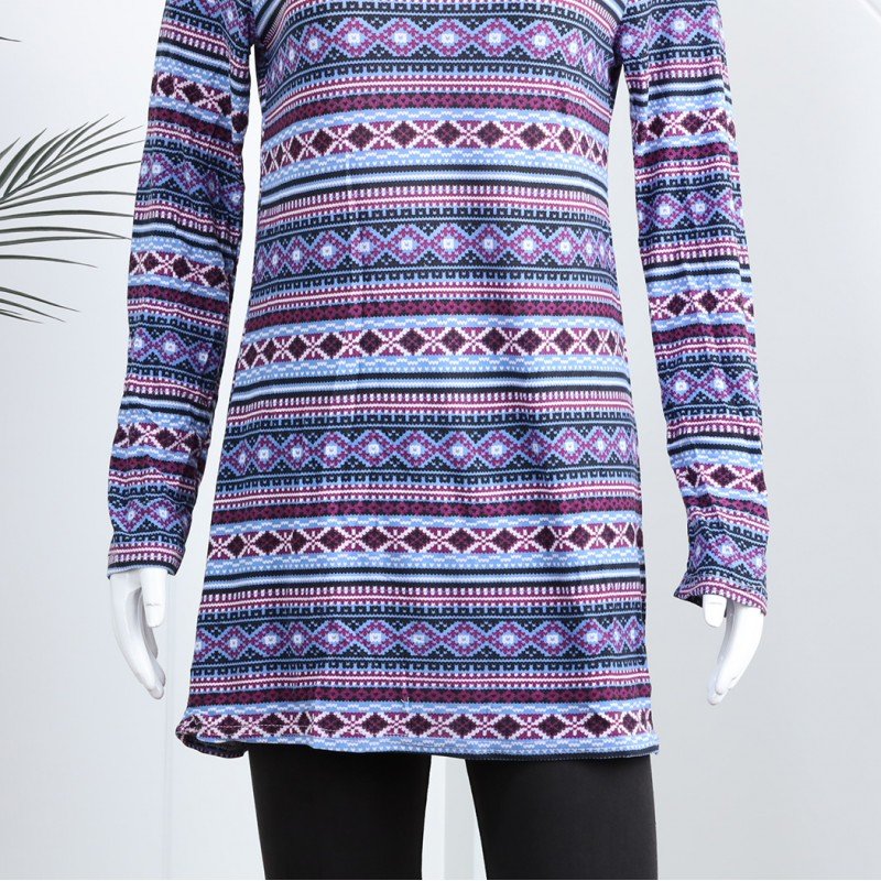 بجامة بأكمام طويلة بتصميم نقشة مغربية للنساء لون بنفسجي وأسود