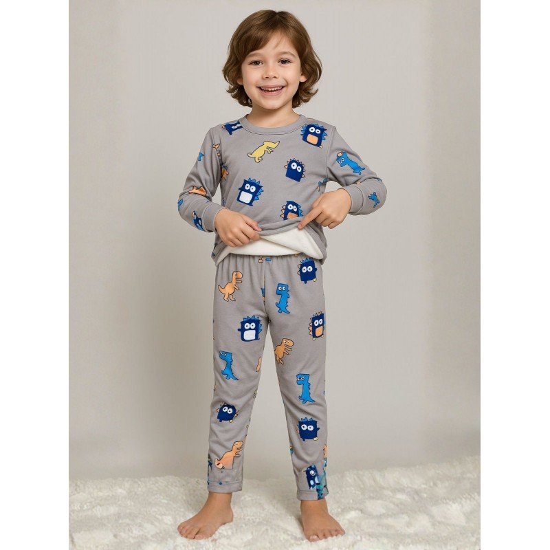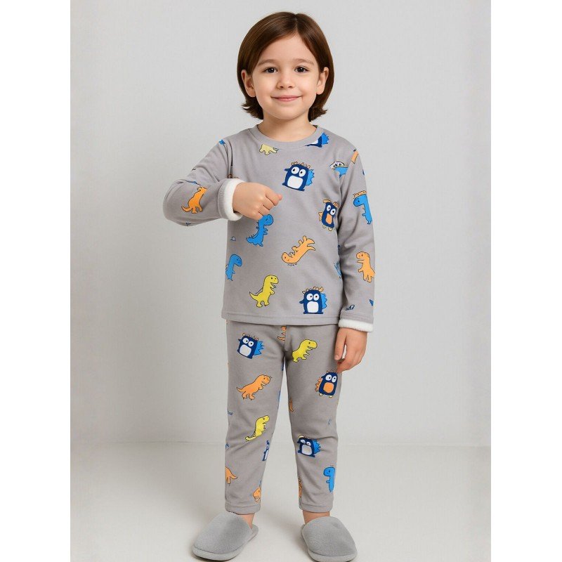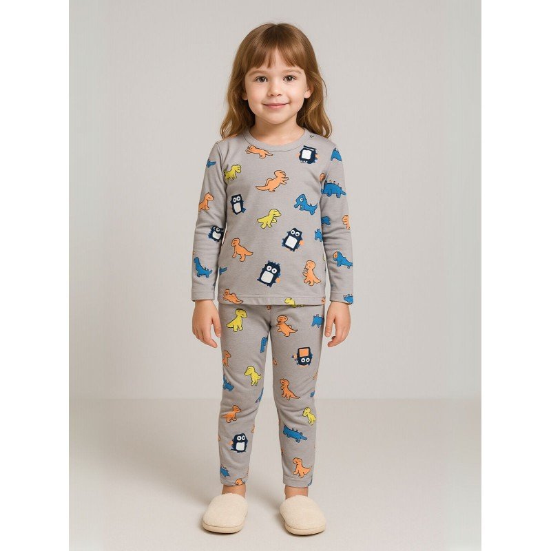 بجامة بأكمام طويلة قطعتين بناتي برسومات لون رمادي