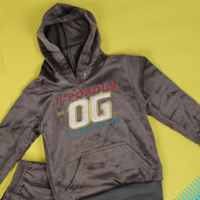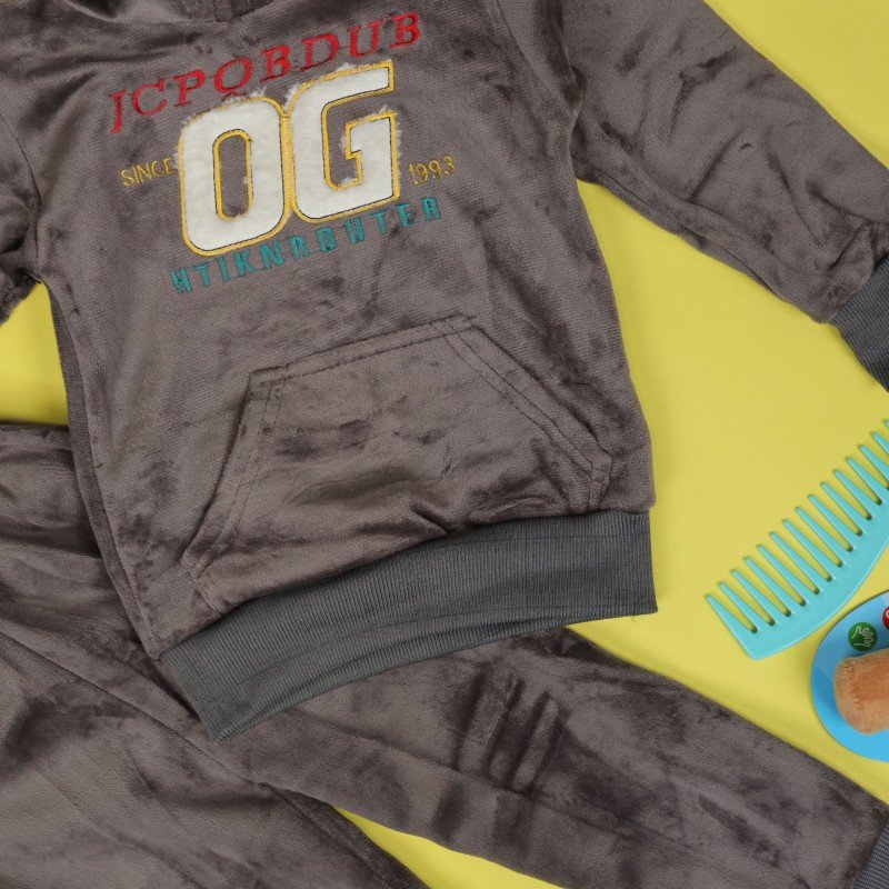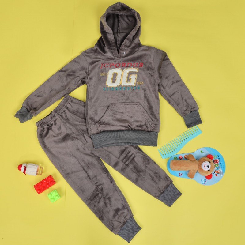 بجامة بأكمام طويلة وطاقية (قطعتين) للأطفال لون رمادي