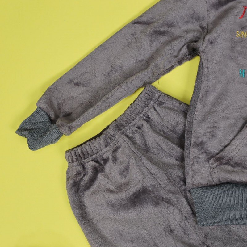 Be the first to review “بجامة بأكمام طويلة وطاقية (قطعتين) للأطفال لون رمادي”