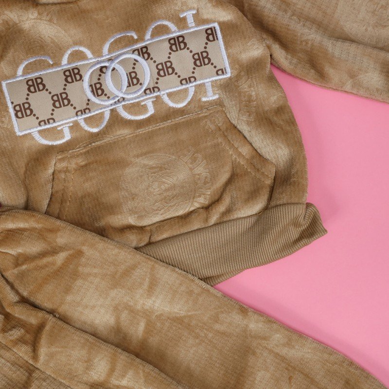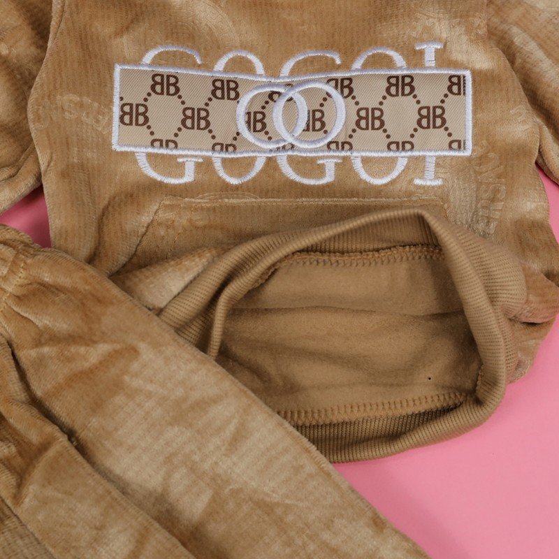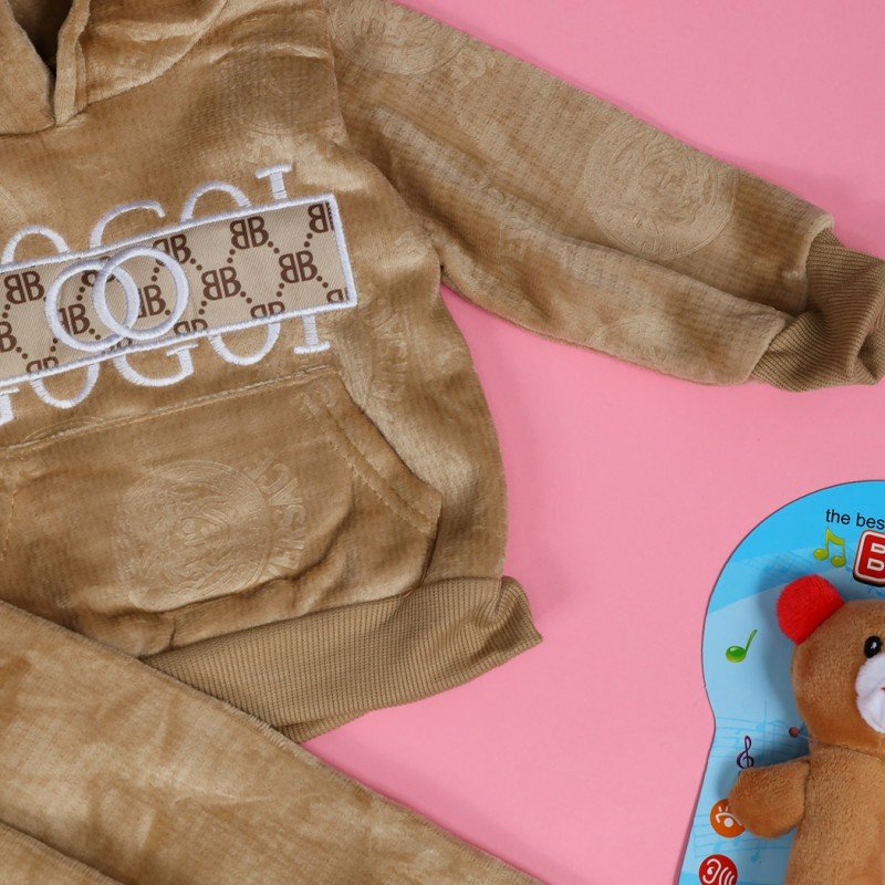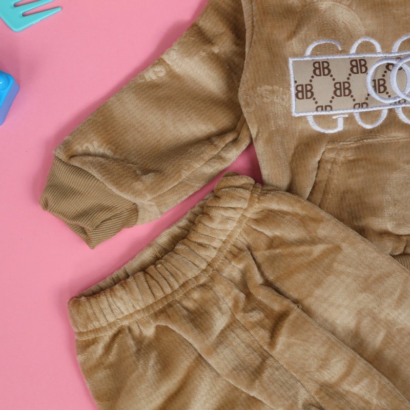 بجامة بطاقية (قطعتين) للأطفال لون بيج