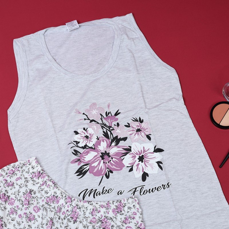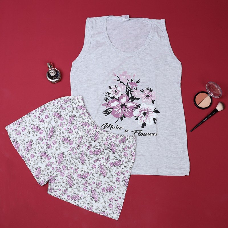 بجامة حفر عريض مع شورت للنساء باللون السكاني