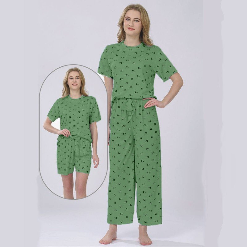 بجامة ستاتي ثلاث قطع بلبس ون سايز لون زيتي