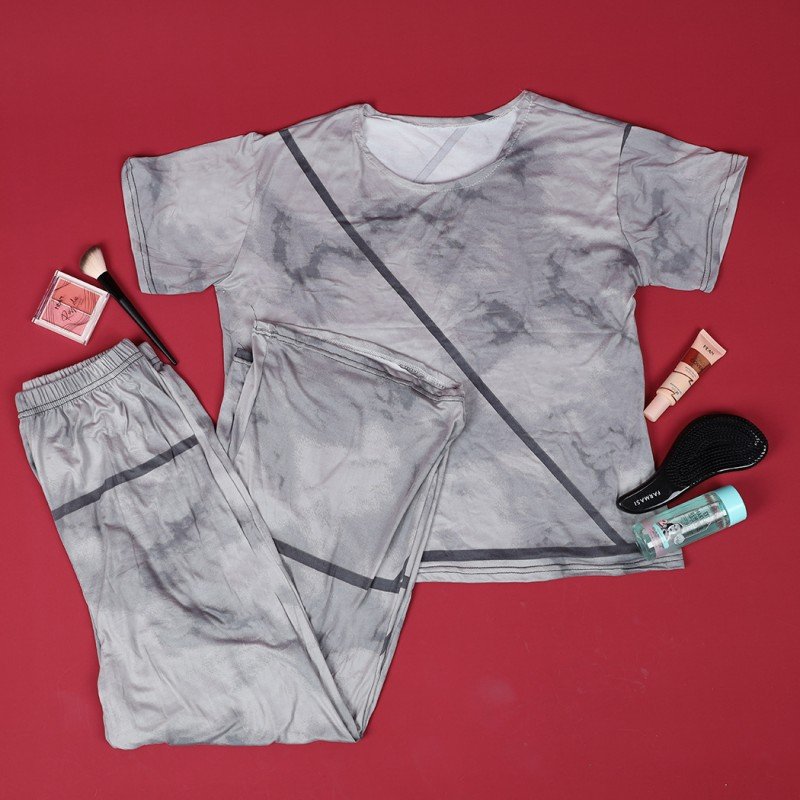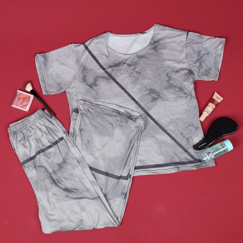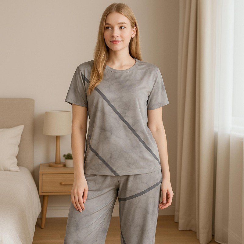 ✅ بجامة ستاتي مكونة من قطعتين بنطلون وتيشيرت قطني