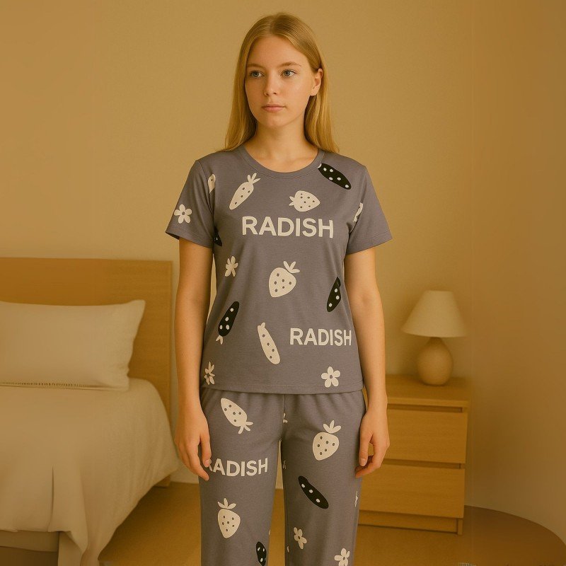 ✅ التصميم:تتكون البجامة من قطعتين؛ بنطلون قطني مريح مع تيشيرت بأكمام قصيرة. التصميم بسيط وأنيق، مع تفاصيل دقيقة تعكس الطابع العصري والمريح.