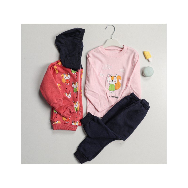 بجامة شتوية 3 قطع للأطفال لون زهري وبيج من Sami Boutique