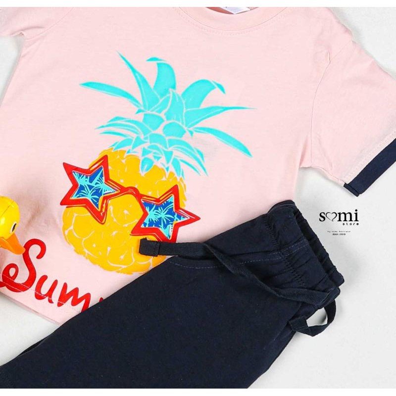 بجامة صيفية قطعتين تيشيرت وشورت للأطفال لون زهري وكحلي من Sami Boutique