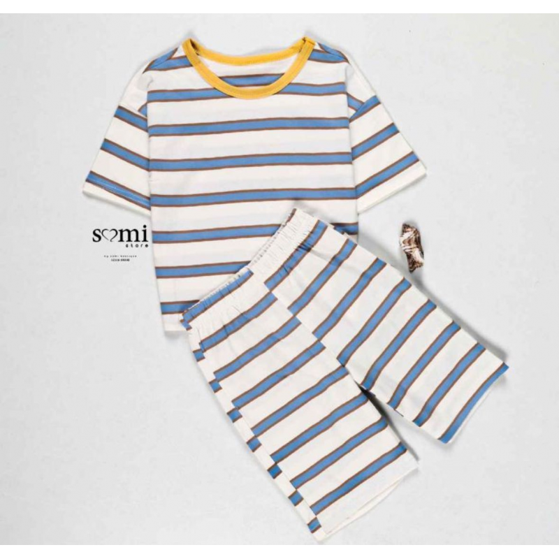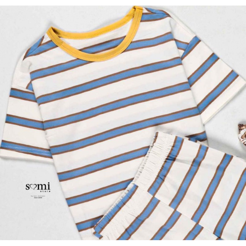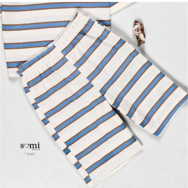 بجامة صيفية للأطفال مخططة بالعرض لون أبيض و أزرق وبني من Sami Boutique