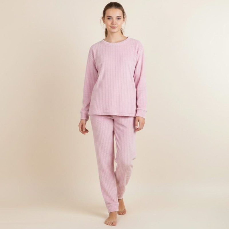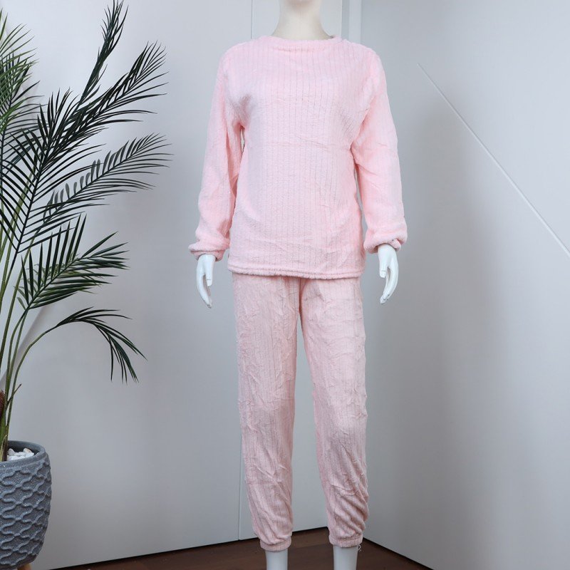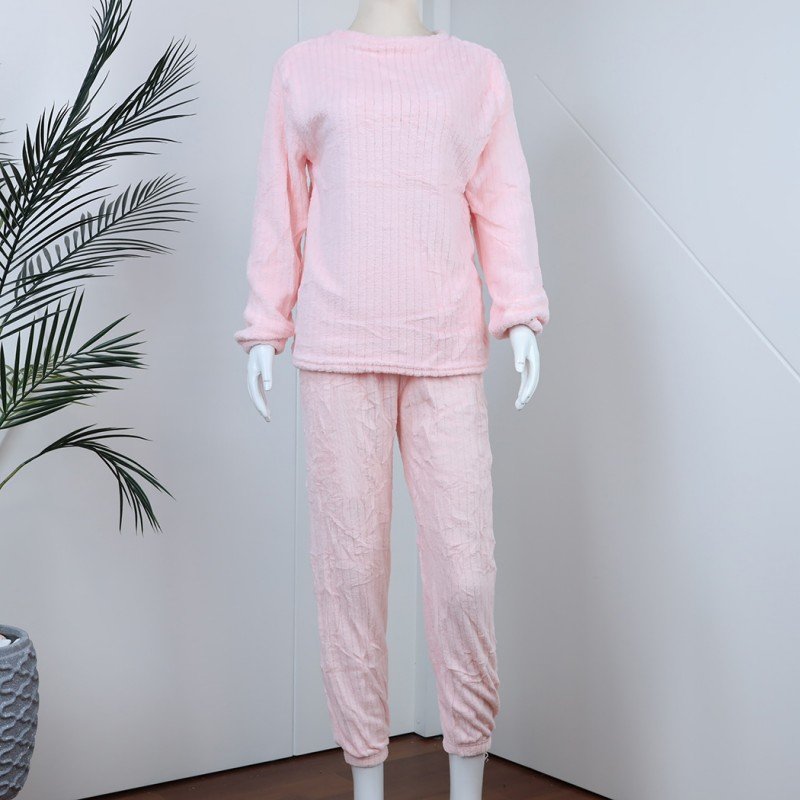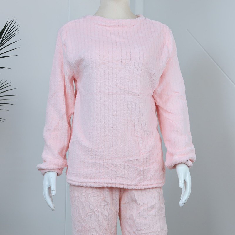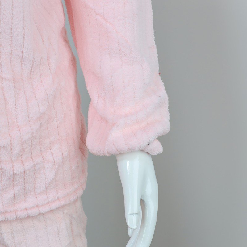 ✅ بجامة فرو بأكمام طويلة مخطط طولي للنساء