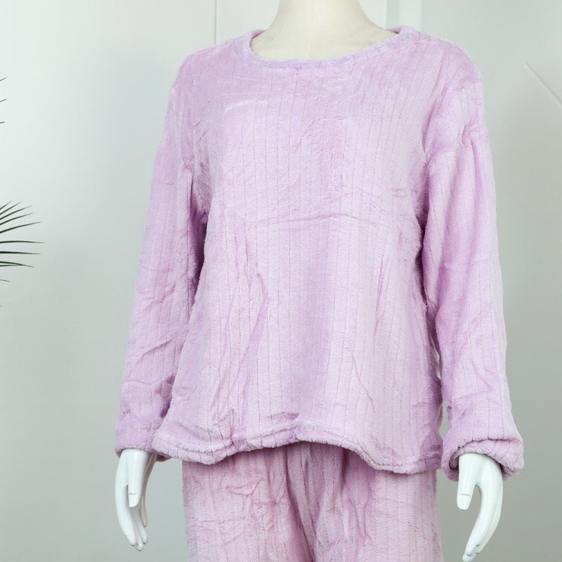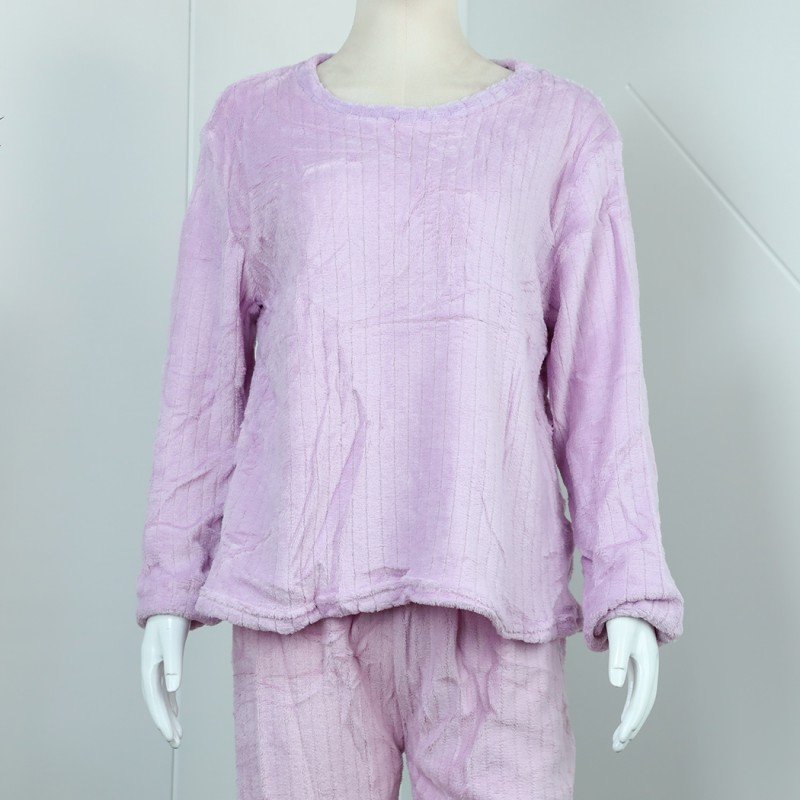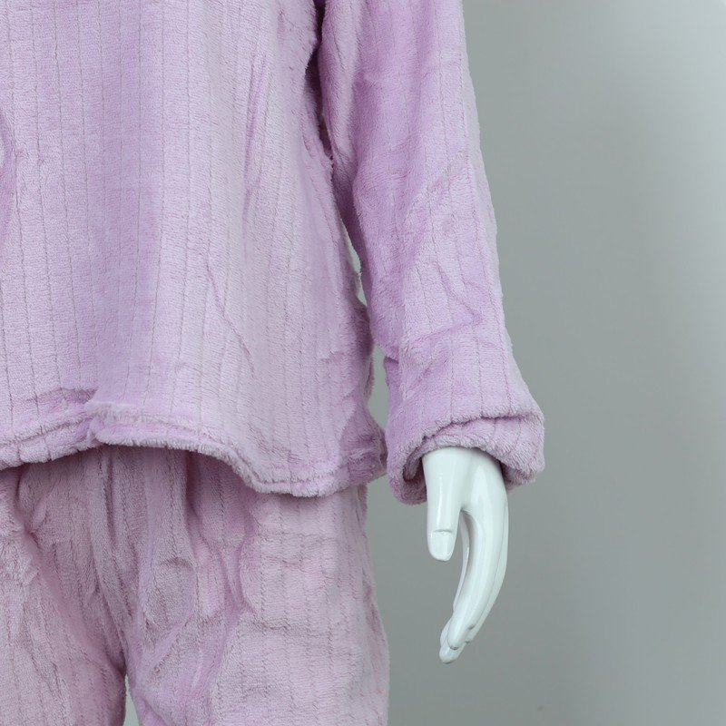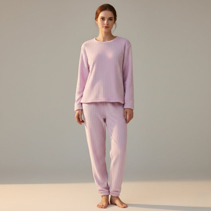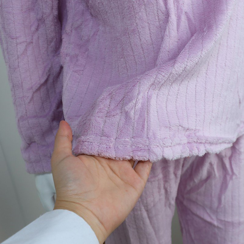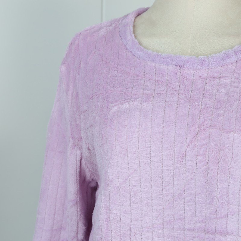 ✅ بجامة فرو بأكمام طويلة مخطط طولي للنساء