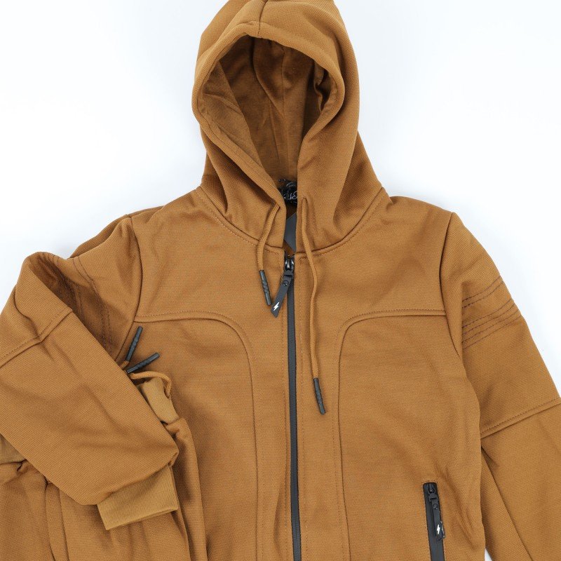✅ الجاكيت تأتي بتصميم بأكمام طويلة مدروزة من الأطراف وسحاب أمامي للإغلاق وطاقية غير قابلة للإزالة وجيبان جانبيان يغلق بسحاب.