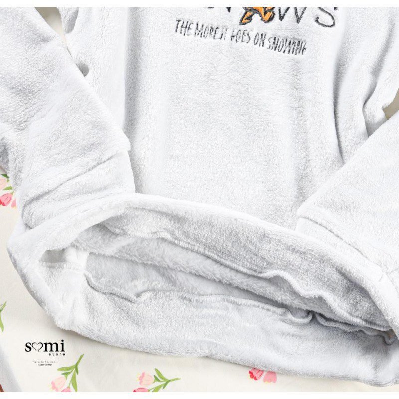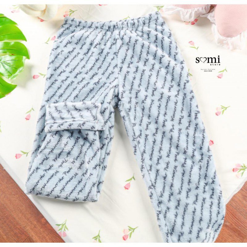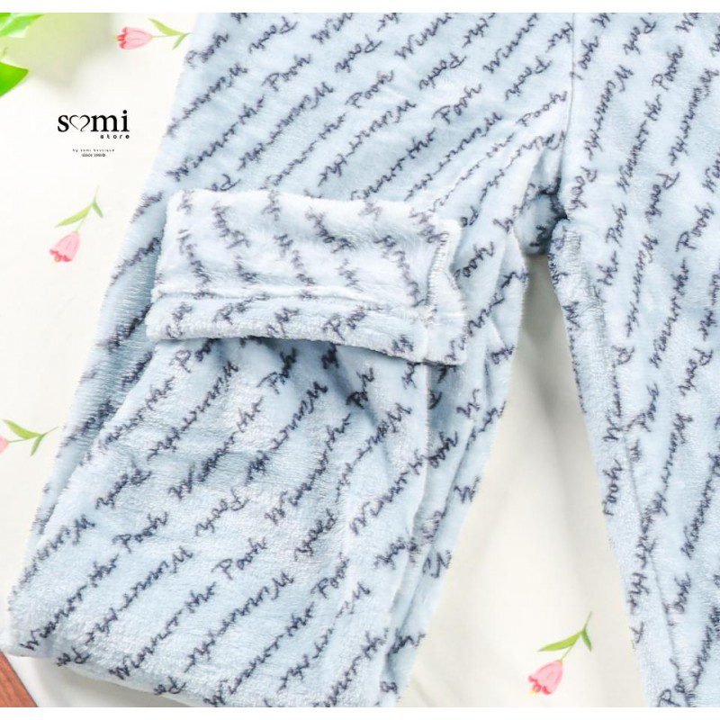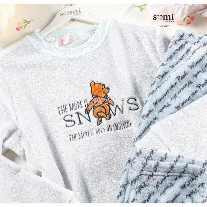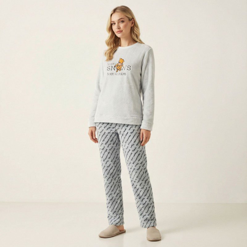 بجامة شتوية ناعمة بتصميم عصري وبسيط، لونها السكني الهادئ يعطي إحساسًا بالراحة والأناقة في نفس الوقت. تتكون من بلوزة طويلة الأكمام مع رسمة لطيفة تضيف لمسة مرحة، وبنطال بنقشة متناغمة وقصة مريحة. خامتها دافئة وخفيفة على الجسم، مثالية للنوم أو لقضاء أوقات الاسترخاء في البيت.