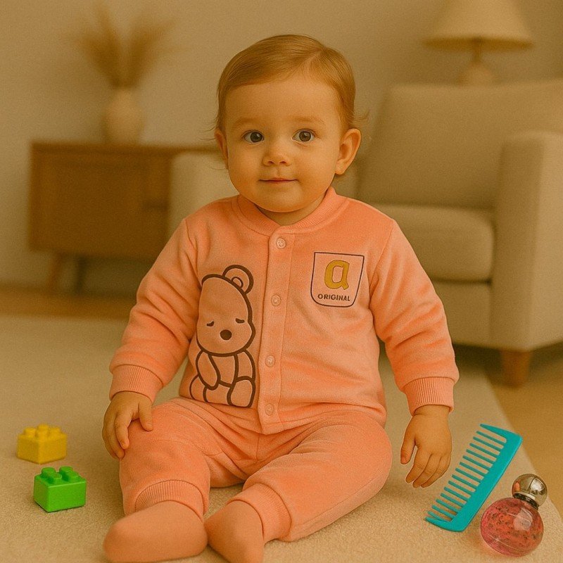 بجامة (قطعتين) للأطفال لون برتقالي فاتح