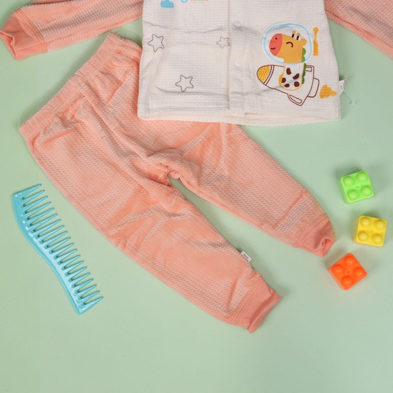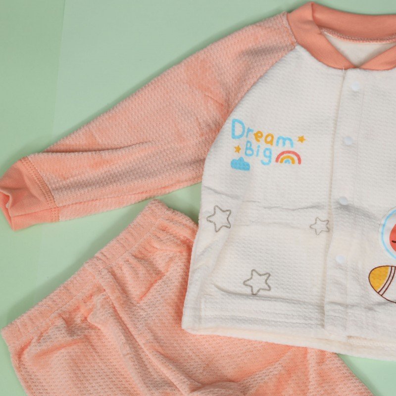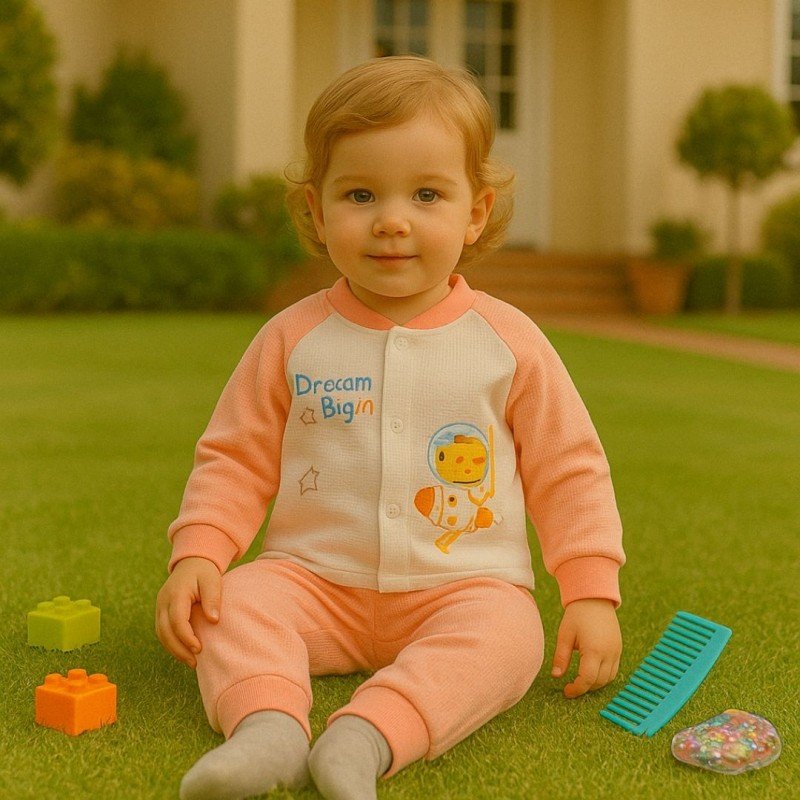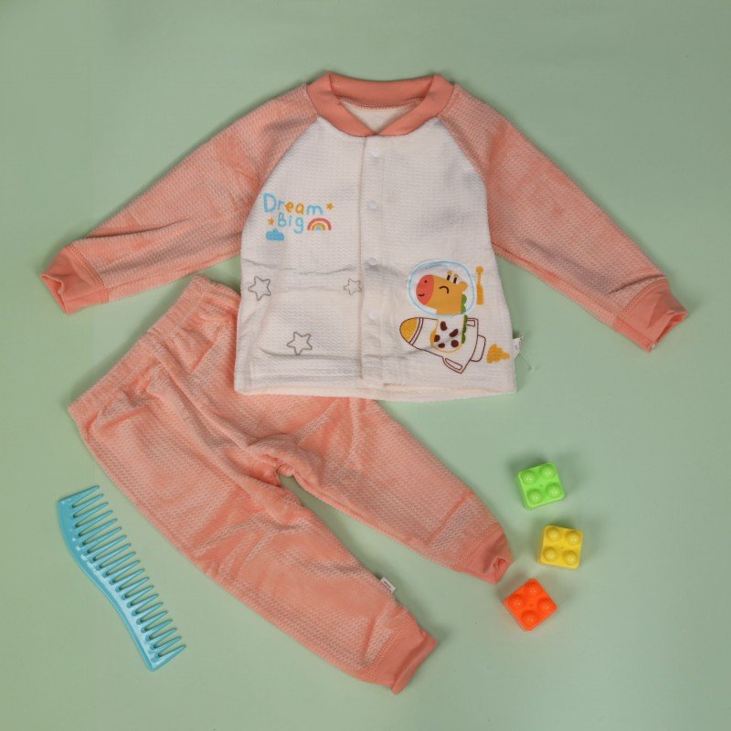 بجامة (قطعتين) للأطفال لون برتقالي وأبيض