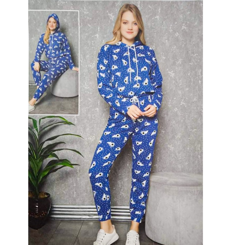 ✅بجامة قطعتين مع هودي بتصميم عيون للنساء