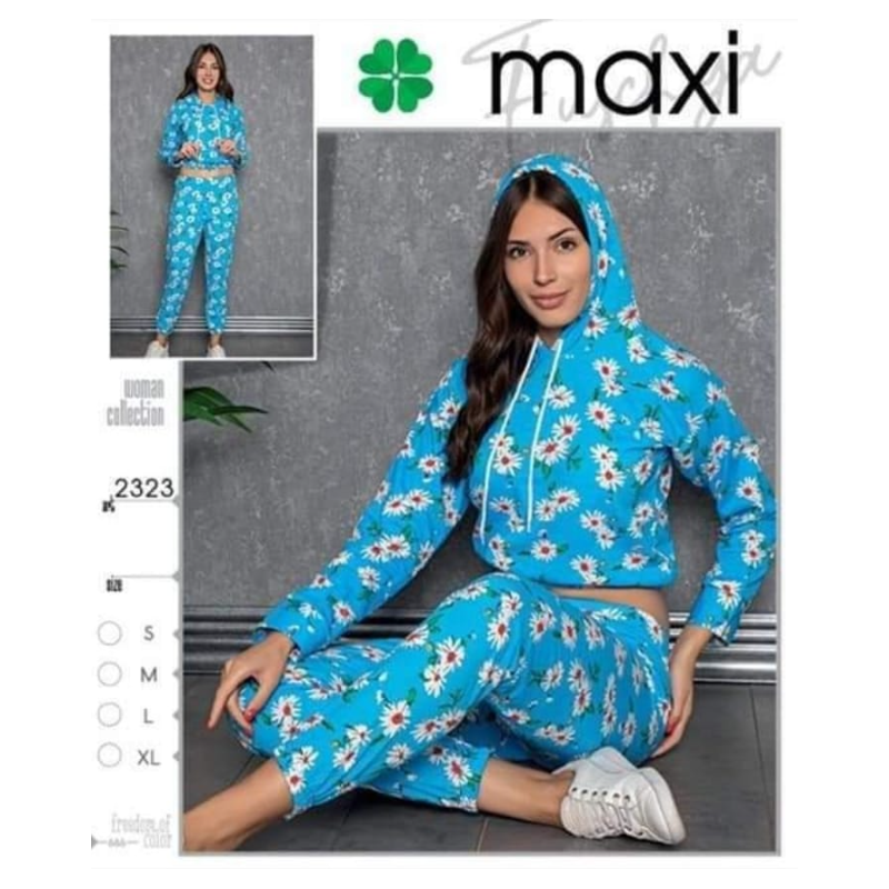 ✅بجامة قطعتين مع هودي بتصميم ورد للنساء