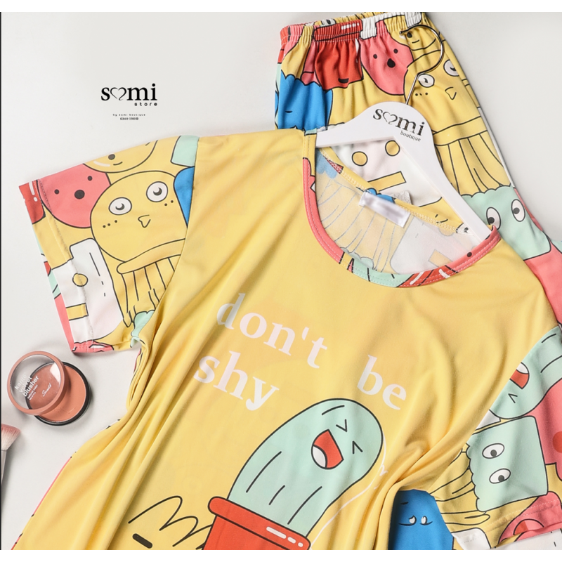 ✅بجامة قطنية بأكمام قصيرة مُكونة من قطعتين للنساء.