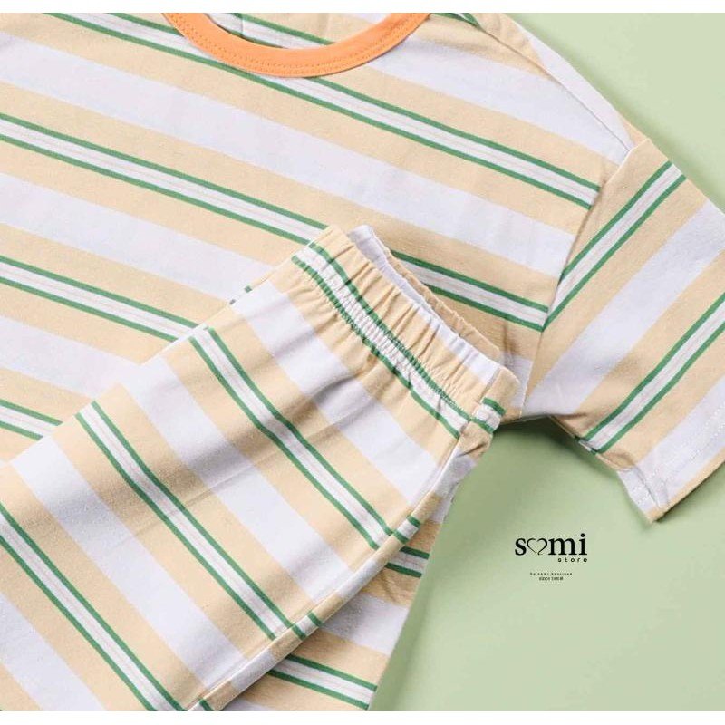 بجامة للأطفال شورت وتيشيرت مخططة بالعرض لون بيج وأخضر وأبيض من Sami boutique