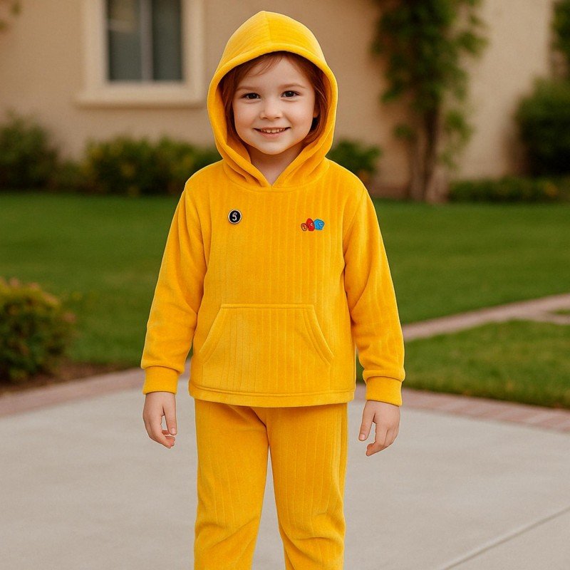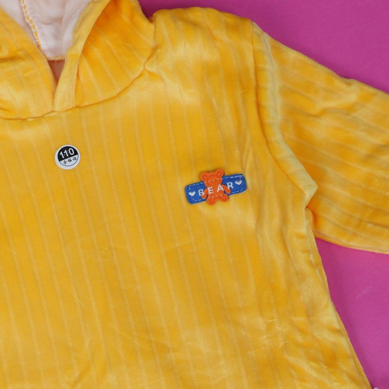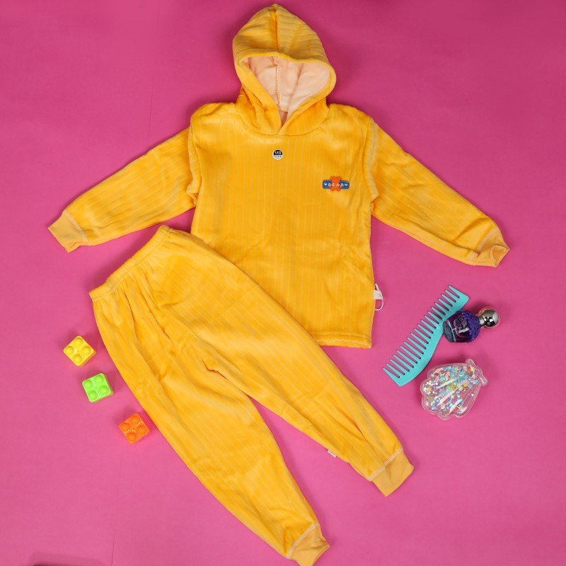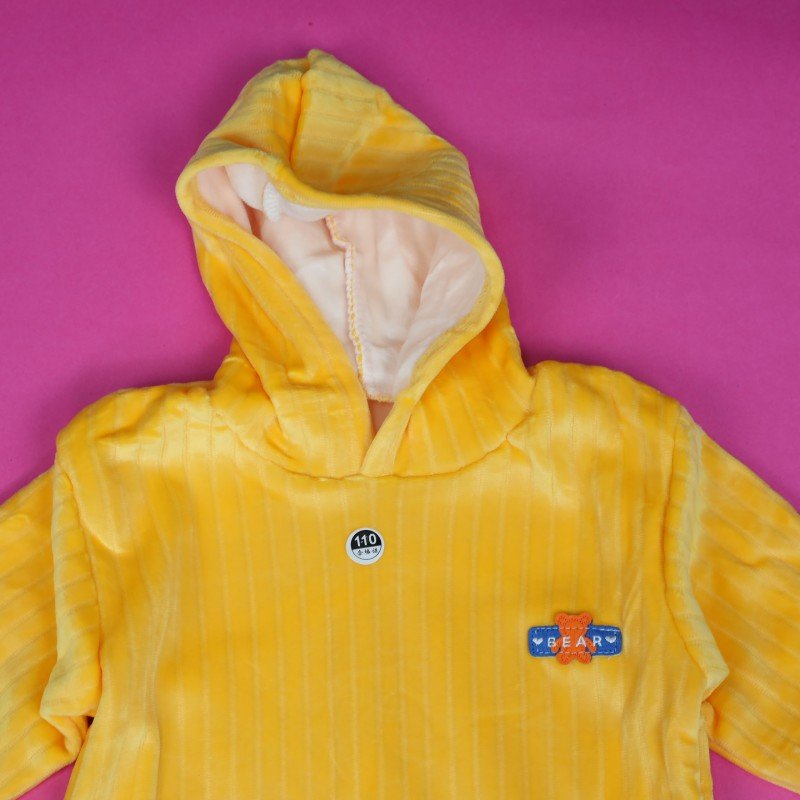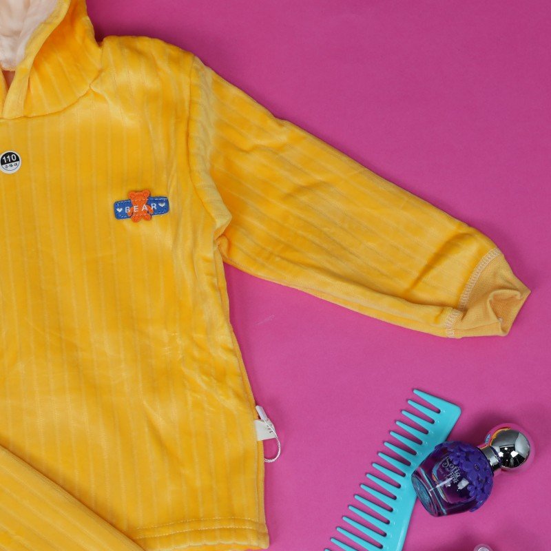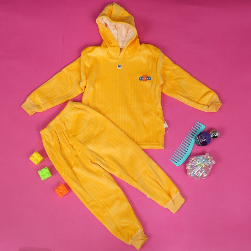بجامة مبطنة بطاقية (قطعتين) للأطفال لون اصفر