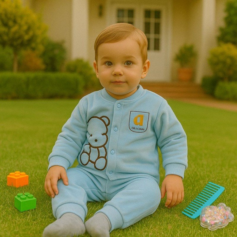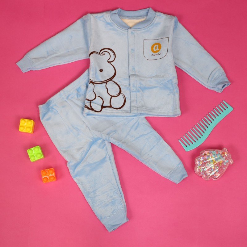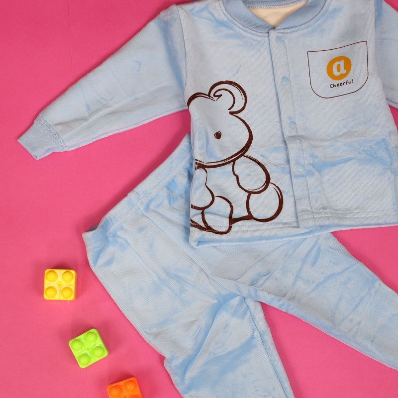 بجامة مبطنة (قطعتين) للأطفال لون أزرق