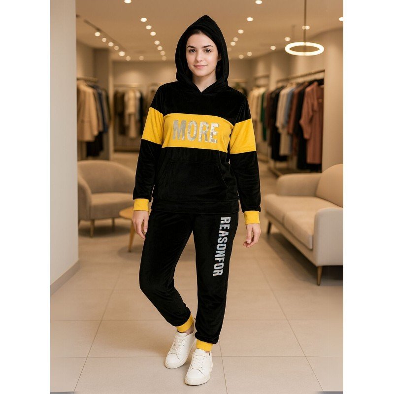✅ بجامة نسائية مُكونة من قطعتين (بلوزة بأكمام طويلة وطاقية، مع بنطلون).