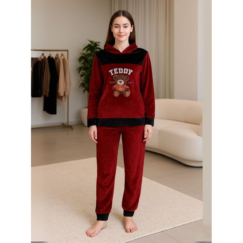 ✅ بجامة نسائية مُكونة من قطعتين (بلوزة بأكمام طويلة وطاقية، مع بنطلون).