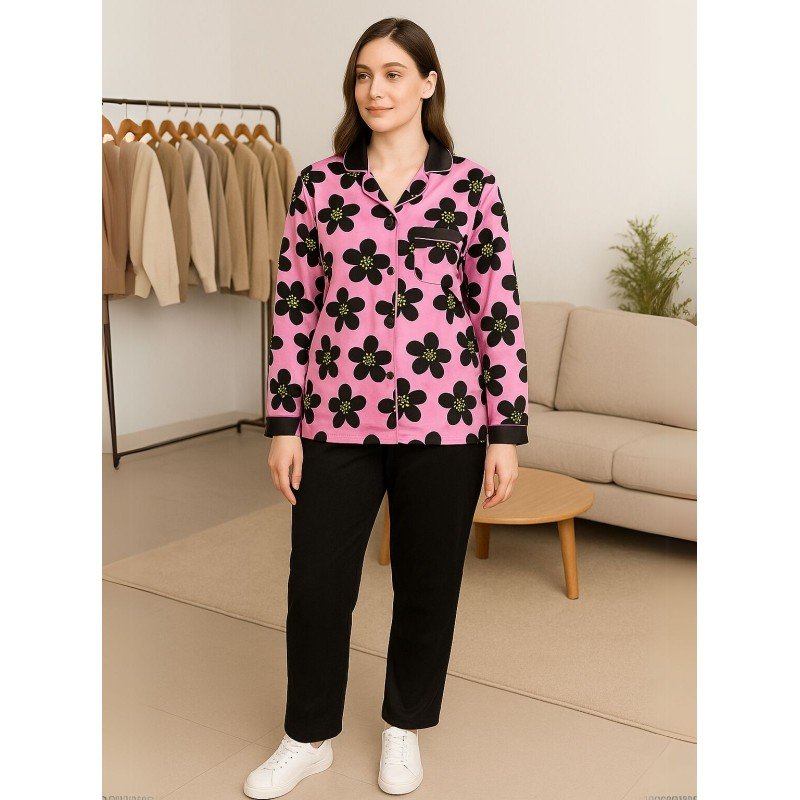 بجامة نسائية مُكونة من قطعتين لون زهري وأسود