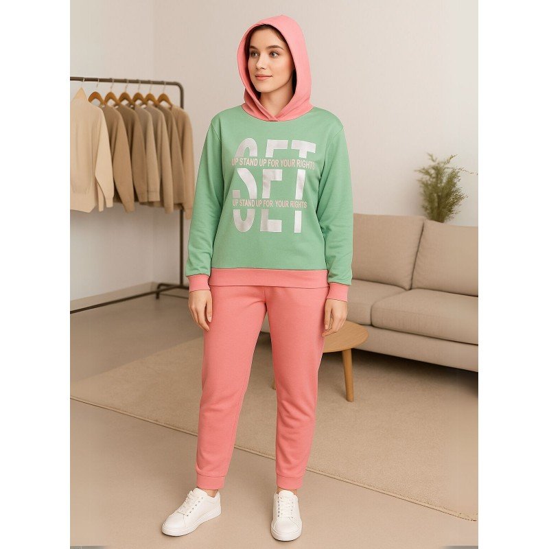 ✅ بجامة نسائية مُكونة من قطعتين (بلوزة بأكمام طويلة وطاقية، مع بنطلون).