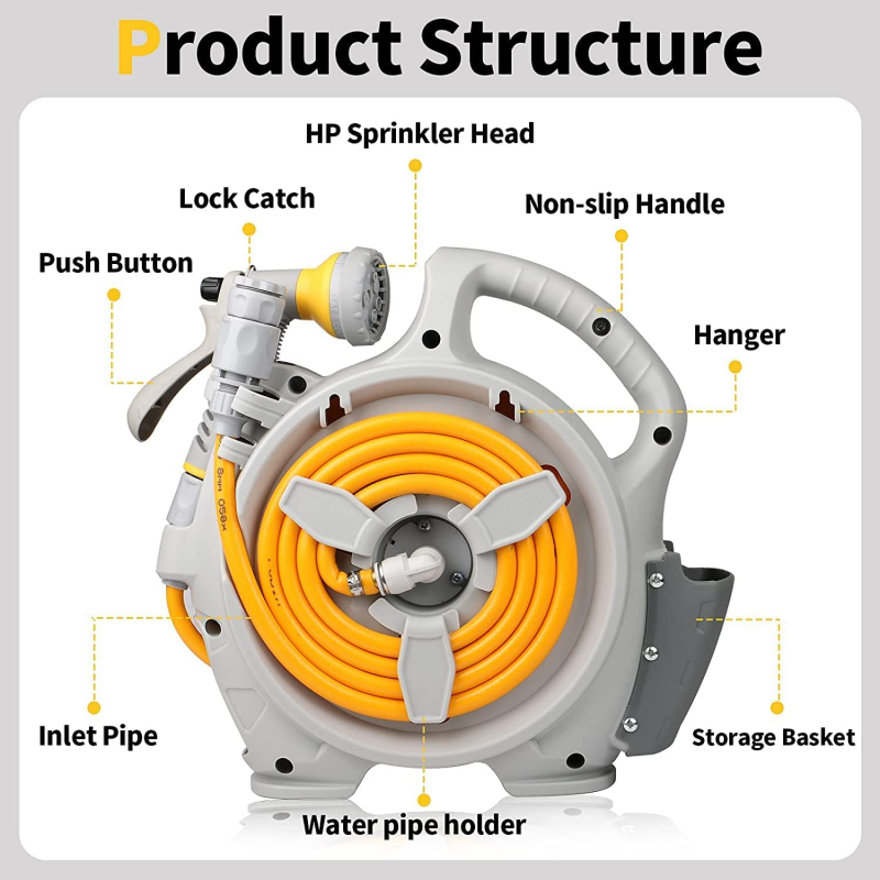 ✅ التصميم: يتكون من برابيش مع قاعدة قوية وطول يصل إلى 15 مترًا، مما يتيح لك استخدامه بسهولة في الحدائق والمزارع أو لأغراض مختلفة مثل الري أو تجفيف الملابس.