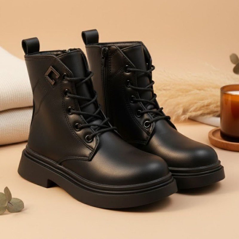 بسطار جلد للأطفال لون أسود
