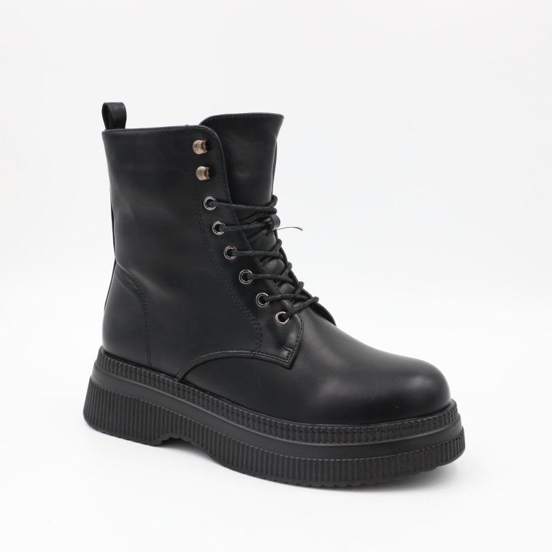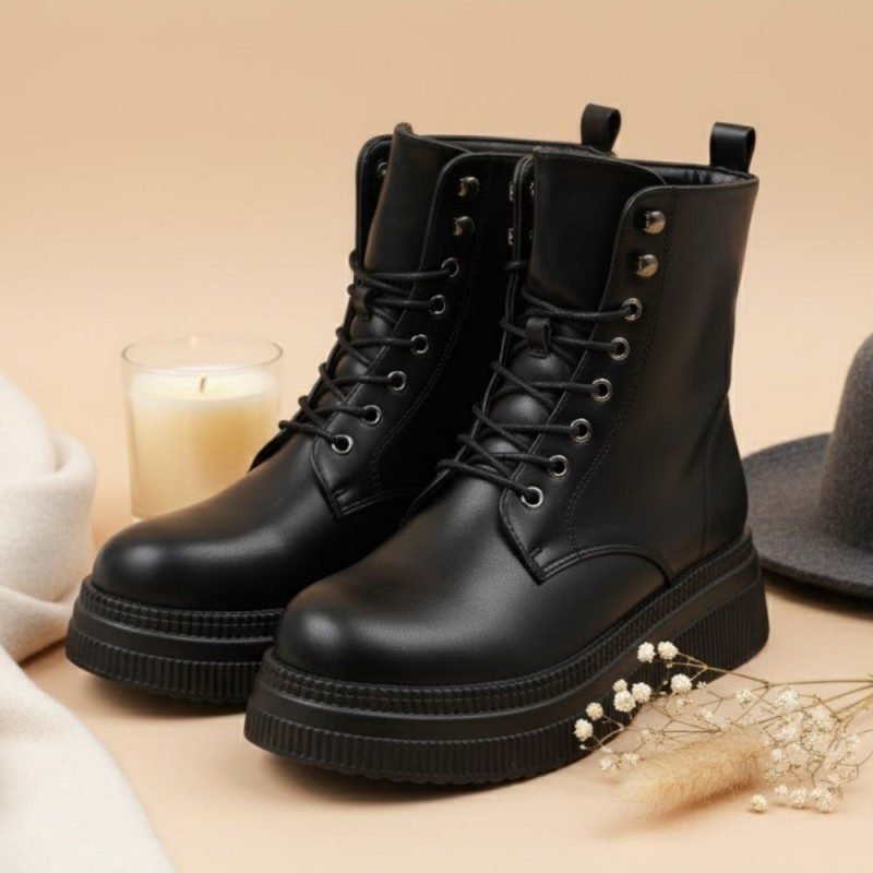 بسطار جلد للنساء لون أسود