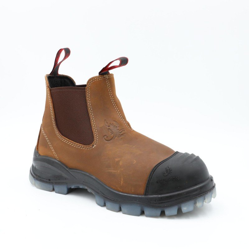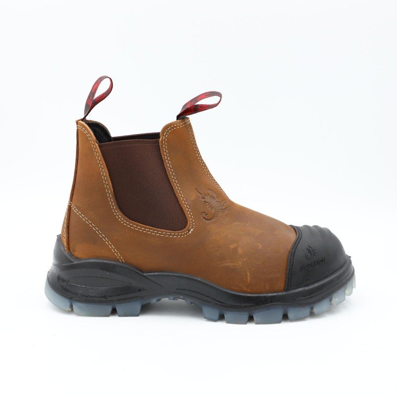 بسطار أنيق من ماركة Scorpion، يأتي بدون مقدمة حديد لكنه مزود بطبقة جلدة بلاستيك أمامية تحمي مقدمة الحذاء من الخدوش والصدمات الخفيفة. مناسب للاستخدام اليومي والأعمال الخفيفة مع خامة جلدية متينة ونعل مطاطي قوي يوفر راحة واستقرار أثناء الحركة. خيار عملي لمن يريد حذاء عمل مريح مع طبقة حماية أمامية إضافية.