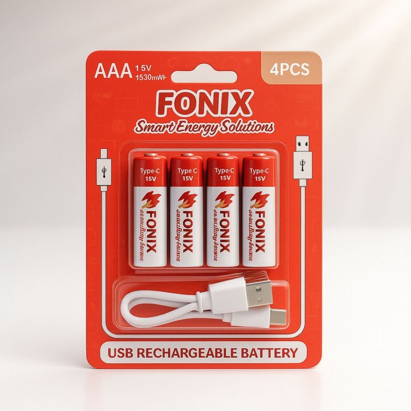 بطاريات شحن من فونيكس مع كابل يو اس بي عدد 4 AAA (1.5 فولت) 550mWh