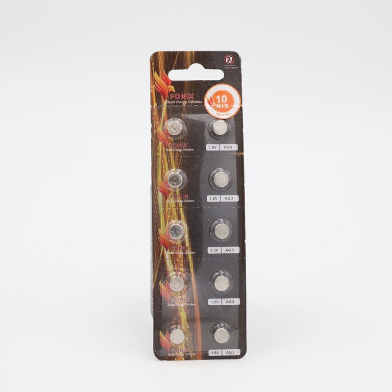 ✅ التصميم: بطارية خلية AG3 من “فونيكس” (Fonix)، العبوة تحتوي على بطاريتين.