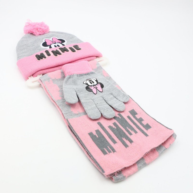 بكج شتوي أنيق للأطفال بتصميم شخصية ميني ماوس من ديزني، يتكوّن من طاقية مزودة ببوم بوم علوي، كفوف، ولفحة متناسقة باللون السكني مع لمسات وردية ناعمة. مصنوع من خامة محبوكة دافئة تساعد على الحفاظ على حرارة الطفل خلال الأجواء الباردة مع إحساس مريح عند الارتداء.