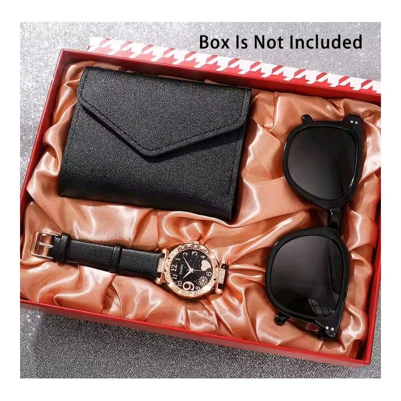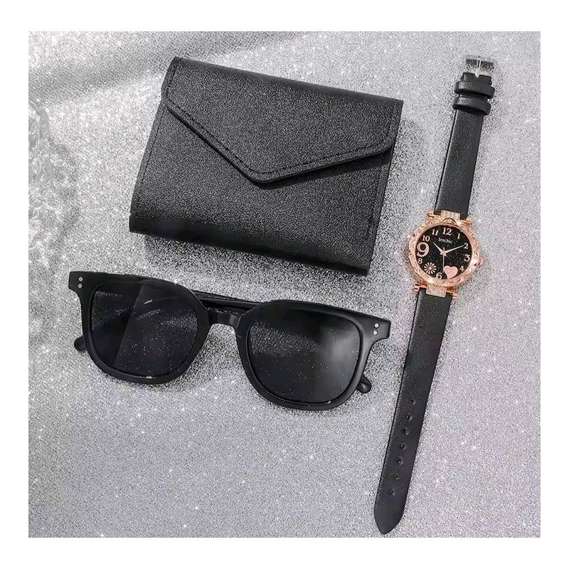 بكج ساعة يد للنساء مع نظارة شمسية وجزدان أنيق – لون أسود