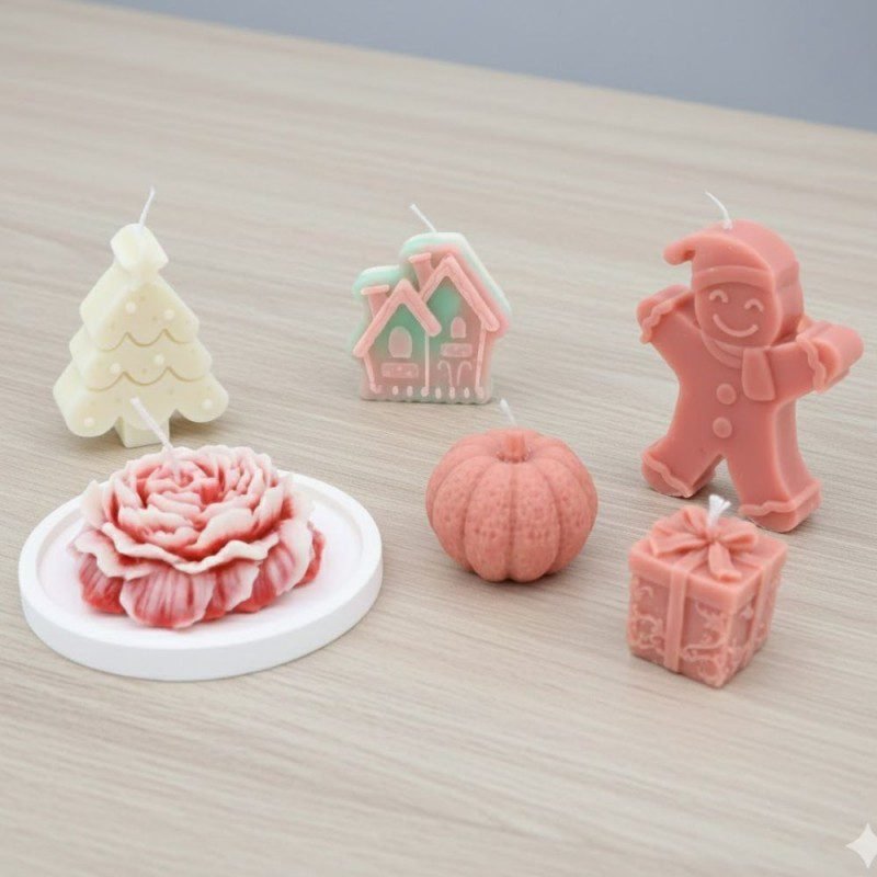 بكج شموع معطّرة فاخر يضم 6 شموع بأشكال كريسماس جميلة بألوان باستيل ناعمة: شجرة، رجل زنجبيل، كوخ ثلجي، وردة، يقطينة، وهدية. مصنوعة من شمع عالي الجودة برائحة منعشة تضيف أجواء دافئة للمنزل. يأتي مع كوستر أنيق كهدية لعرض الشموع بشكل راقٍ ومميز.