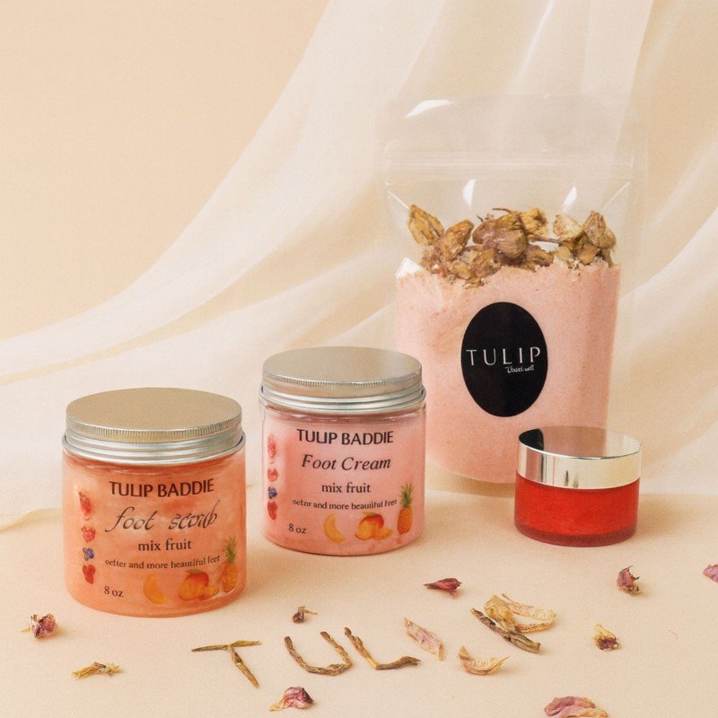 بكج عنايه بالقدم مكون من اربع قطع املاح فواره مقشر قدم حجم 8OZ مرطب 8OZو مورد 2OZ نكهه فواكه