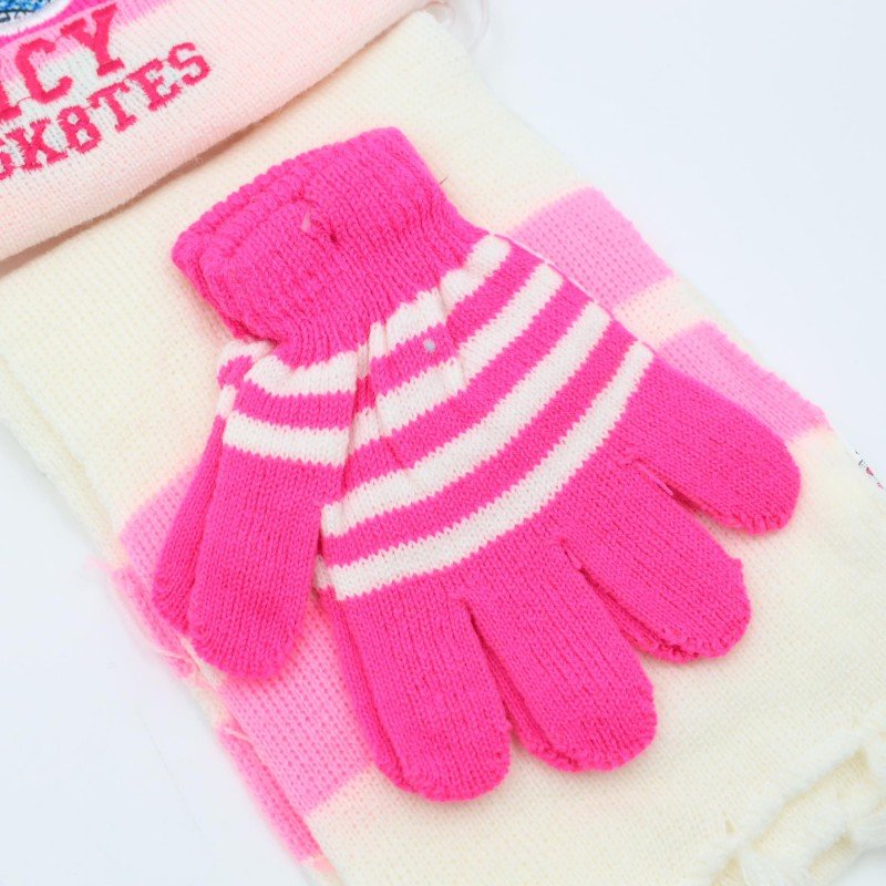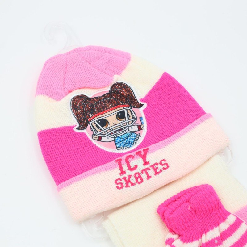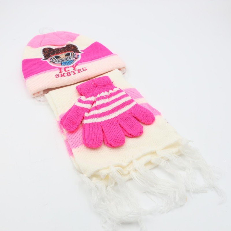 بكج LOL طاقية + كفوف + لفحة لون ابيض + فوشي