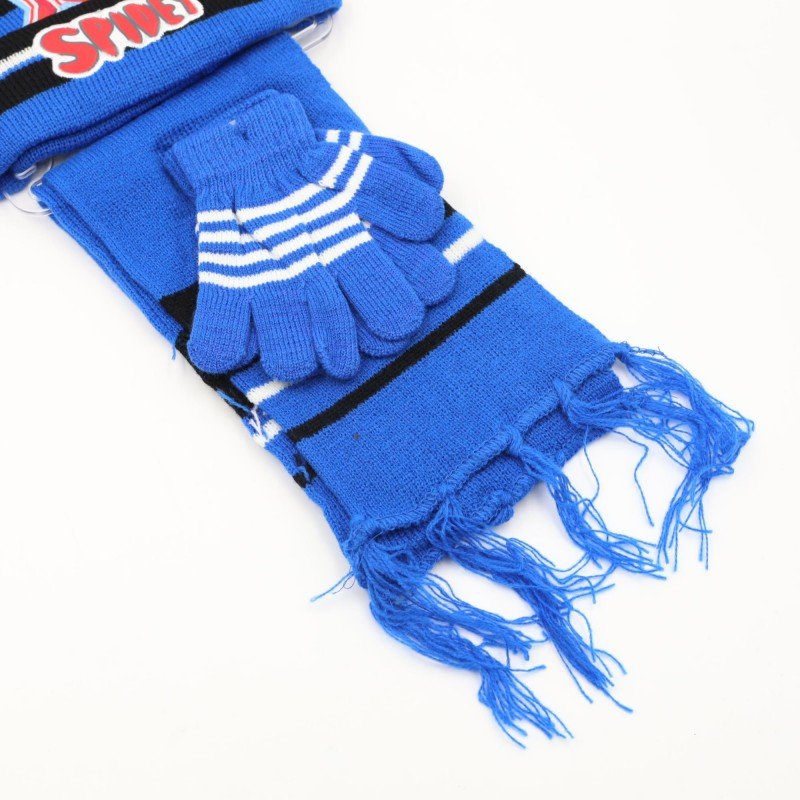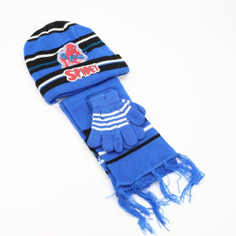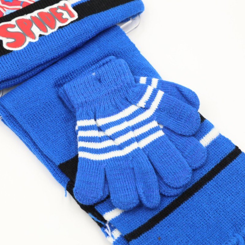 بكج شتوي متكامل للأطفال بتصميم شخصية سبايدر مان، يتكوّن من طاقية، كفوف، ولفحة متناسقة باللون الأزرق مع تفاصيل سوداء وبيضاء أنيقة. يوفر دفئًا مناسبًا خلال الأجواء الباردة مع خامة محبوكة ناعمة ومريحة للاستخدام اليومي.