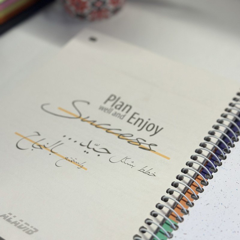 التصميم:بلانر سلكي بتصميم بسيط وأنيق، يتيح سهولة التقليب والتنظيم. يتميز بتصميم جذاب باللون البنفسجي الذي يضيف لمسة من الفخامة والهدوء.