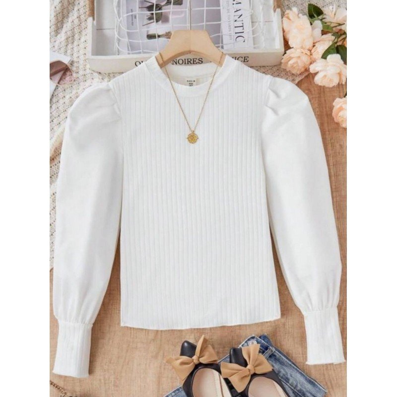 بلوزة بناتي لون ابيض كم طويل