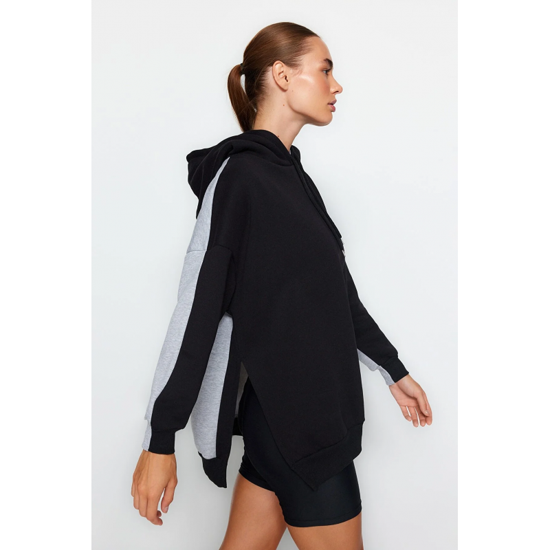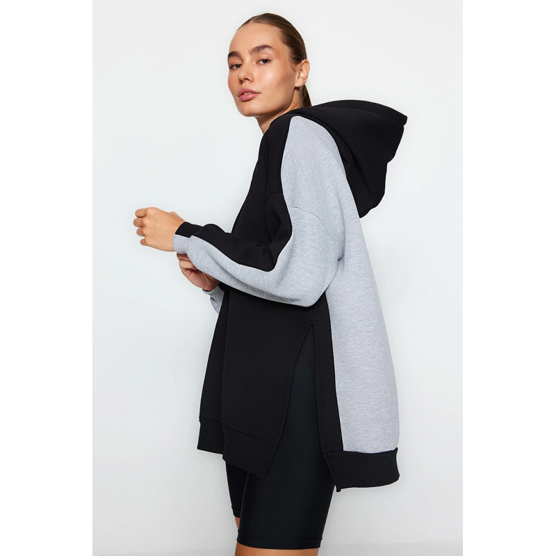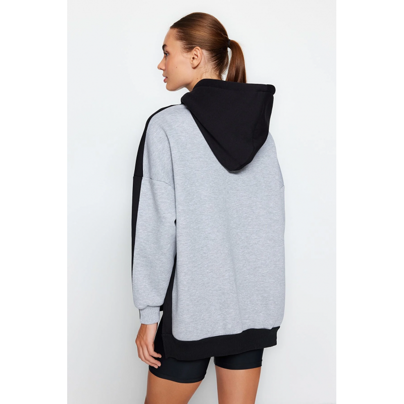 ✅ بلوزة سويت شيرت ترينديول صوف رياضي بقصة واسعة للنساء لون رمادي وأسود